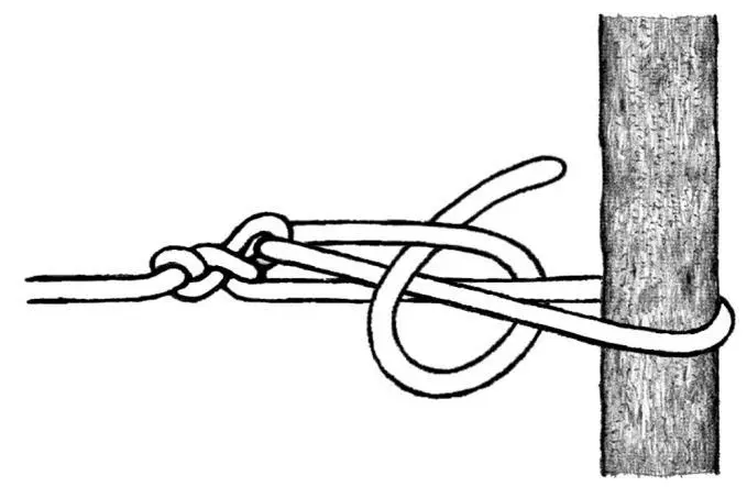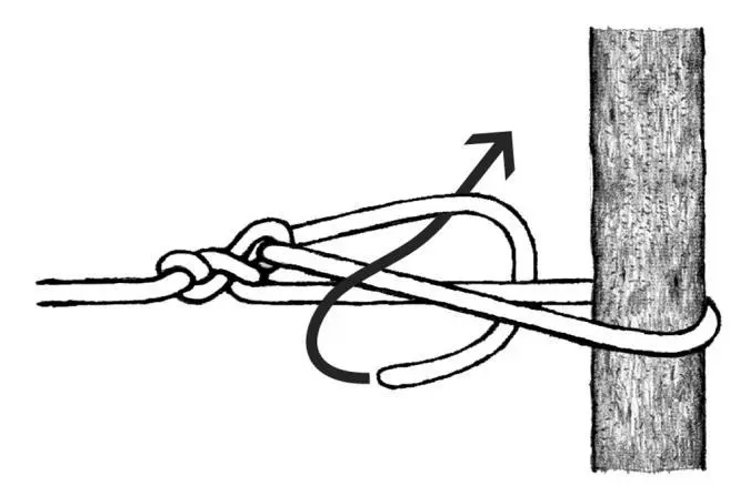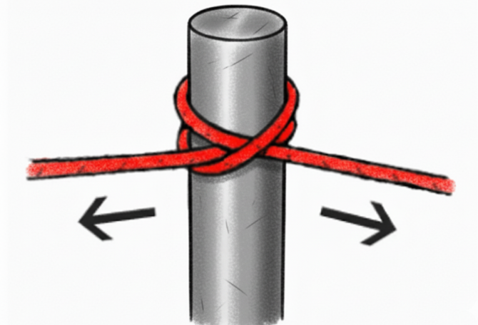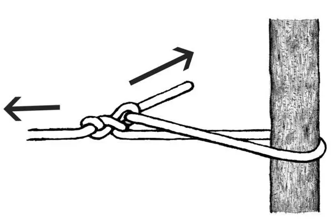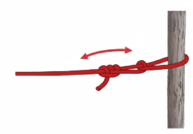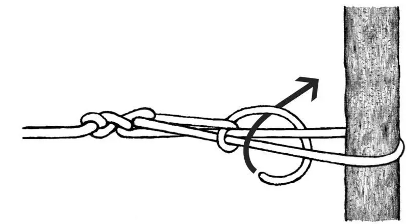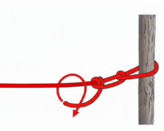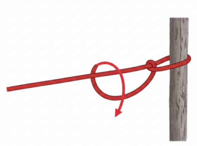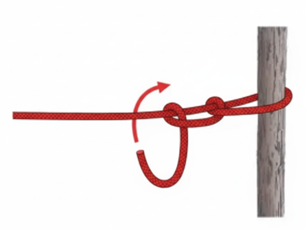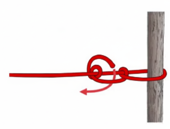 ポールや木の幹など、棒状のものにロープを素早く結びつけたい時に便利な結び方です。