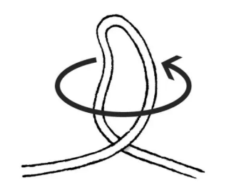 ひねった輪と、末端の間をU 字につまんで輪に通す