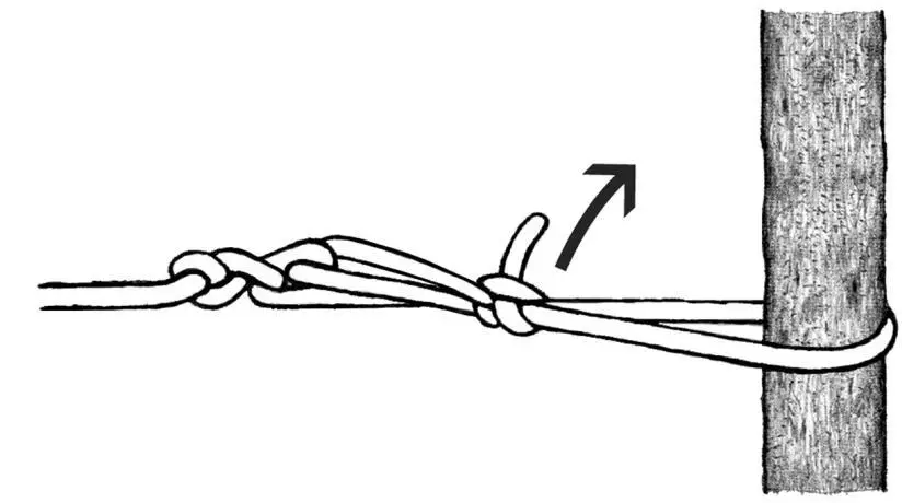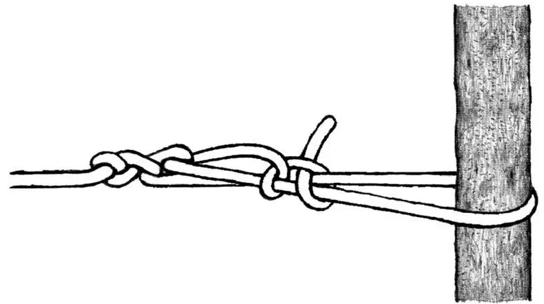 「南京結び」とも呼ばれ、てこの原理を応用して非常に強い力でロープを張ることができる結び方です。