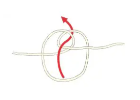 ロープの先端(「蛇」と覚えます)を、その輪に下から通します。