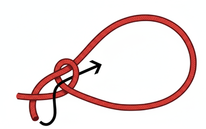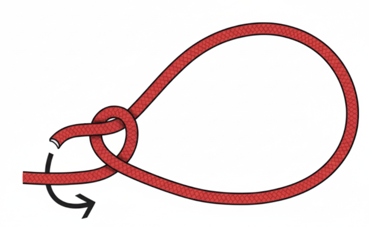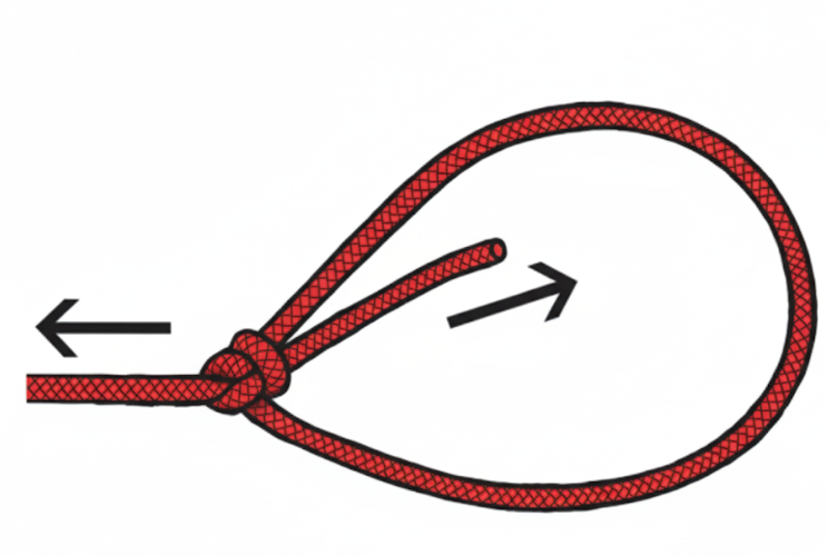 ロープの途中に、どの方向から力がかかっても強度が落ちない輪を作ることができる便利な結び方です。