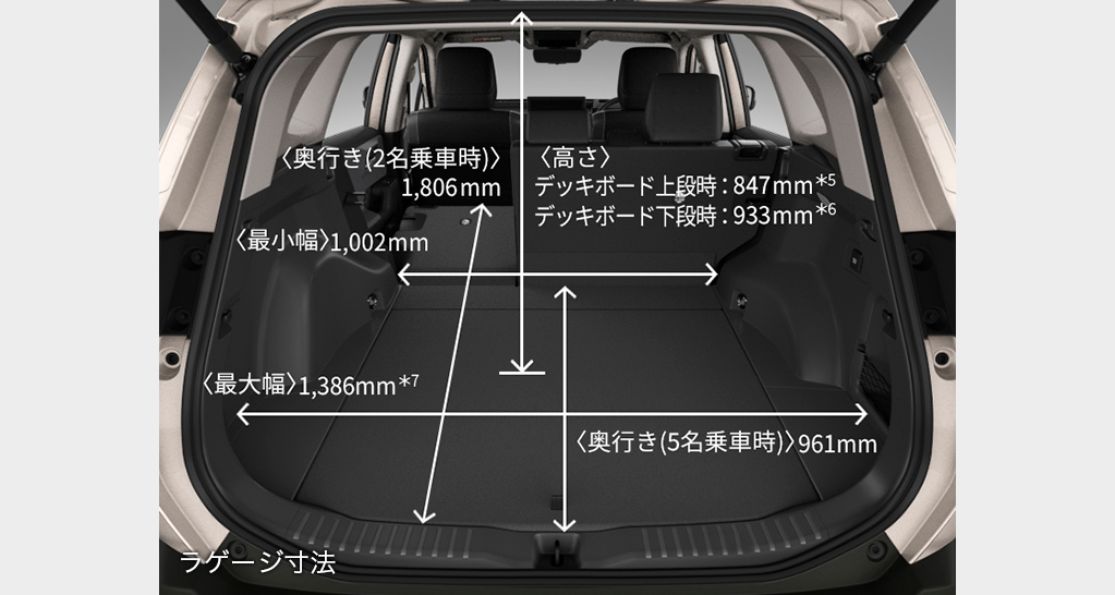 旧型モデル(2019〜2025年)の荷室容量は580Lでしたが、新型では 749L(デッキボード下段時)を記録しています。[2]