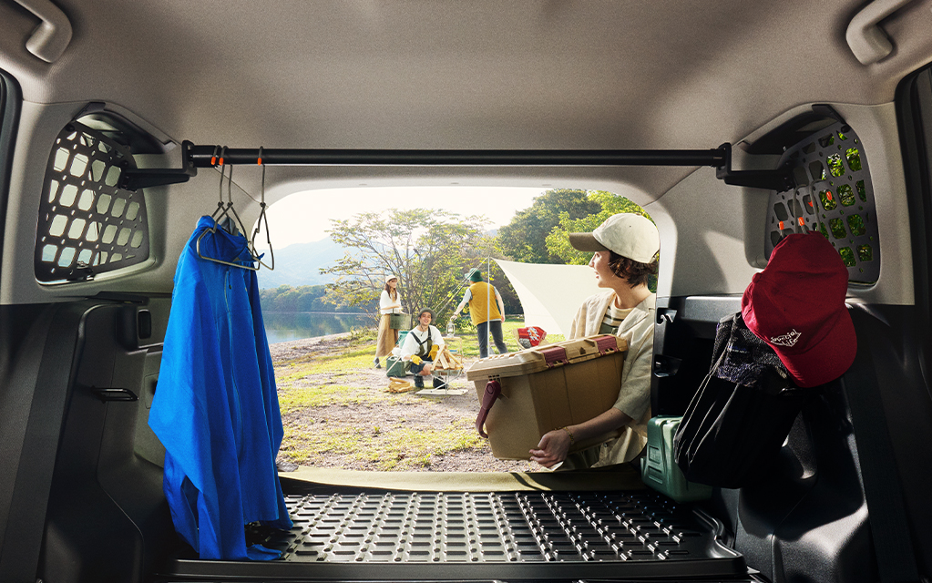 朝、リアゲートを開けて淹れたてのコーヒーを飲む。そんな憧れのスタイルが、特別な改造なしで手に入ります。