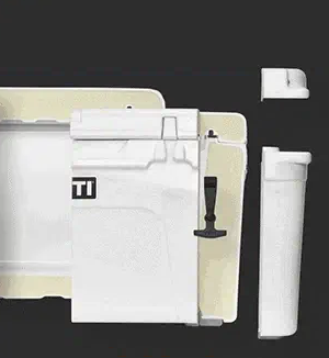 YETIのハードクーラーの最大の特徴は、「ロトモールド(回転成形)製法」にあります [1]。 これは、金型を回転させながら樹脂を流し込み、つなぎ目のない一体型のボディを作り上げる特殊な製法です。