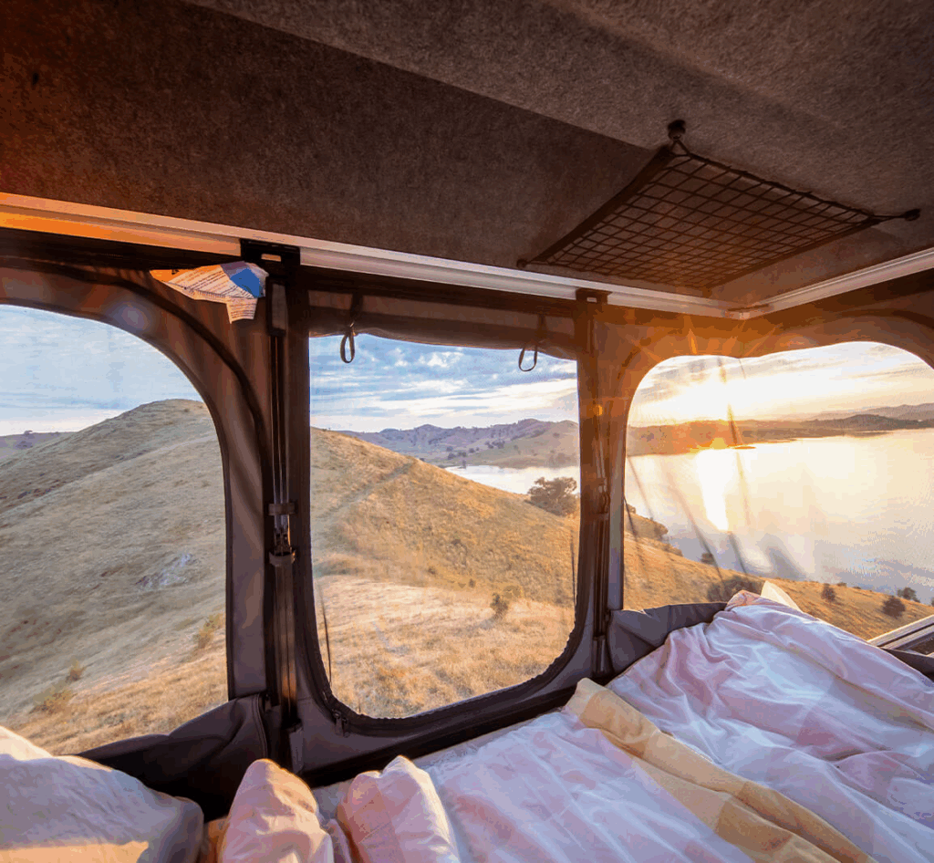 ルーフテントは地上から高さがあるため、見晴らしが非常に良いのが特徴です。 朝起きてテントの窓を開ければ、普段とは違う高さからの絶景が目に飛び込んできます。