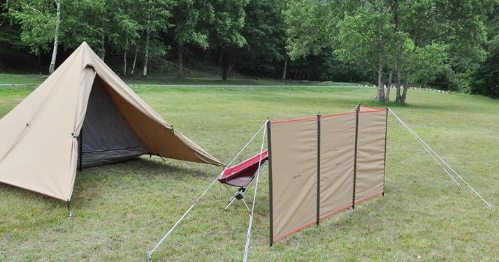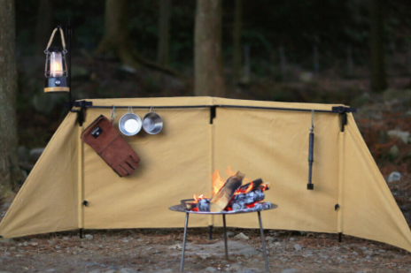 もともとは戦国時代などで風や視線を遮るために使われていた道具が起源とされています。 現代のキャンプシーンでは、より機能的かつスタイリッシュに進化しました。 テントやタープとは異なり、主に地面に近く、自立またはポールとロープで固定する低い壁のような形状が特徴です。