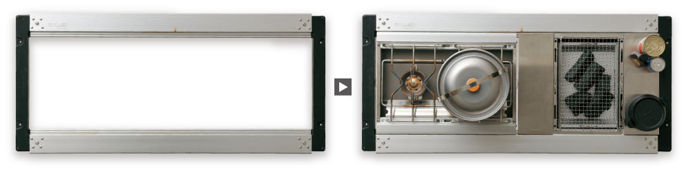 彼らは、テーブルの天板に熱源であるバーナーやBBQグリルを「ビルトイン」できる仕組みを考案し、そのためにすべての関連製品のサイズを統一する必要がありました。