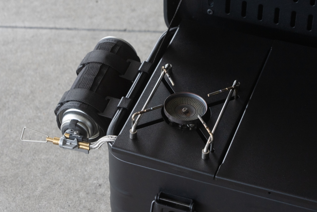 特定の天板パーツを使うことで、SOTOの「ST-310/330」や、Iwataniの「タフまるJr.」などのバーナーを、コンテナの天板と面一(ツライチ)に埋め込むことができます。