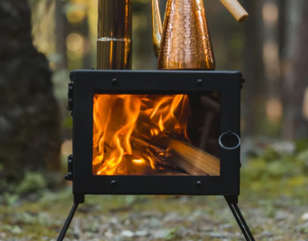 徒歩やバイクでのキャンプでも薪ストーブを楽しめる、革新的な一台です。