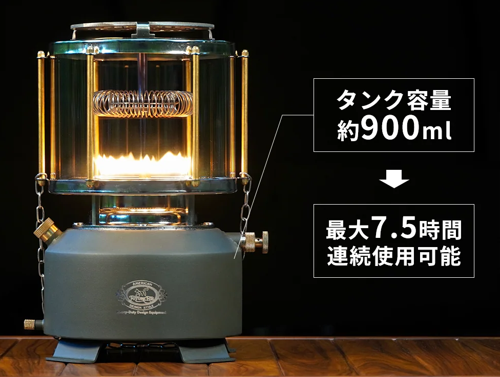 通常のオイルランタンは「明かり」を主目的としますが、本機は明確に「暖房器具」として設計されました。