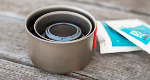 - ザル(ストレーナー)を挟む:シェラカップと同サイズのザルを間に挟むことで、水切り機能を付加しつつ収納できます。