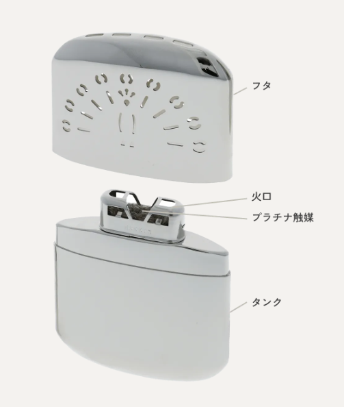 気化したベンジンが、プラチナ(白金)と接触して起きる「触媒反応」を利用しています。