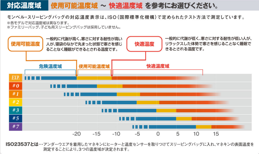 例えば、最低気温が 5℃ の予報なら、快適温度 0℃ 前後の「#2」を選ぶのが安心です。