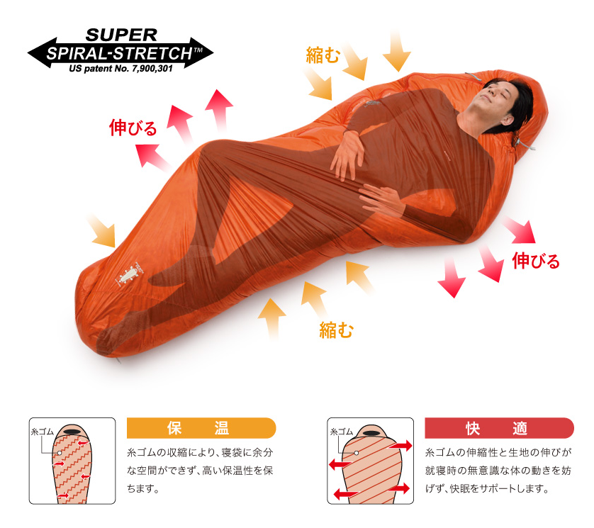 独自の技術により、寝袋に入ったままあぐらをかけるほどの柔軟性を実現しています。