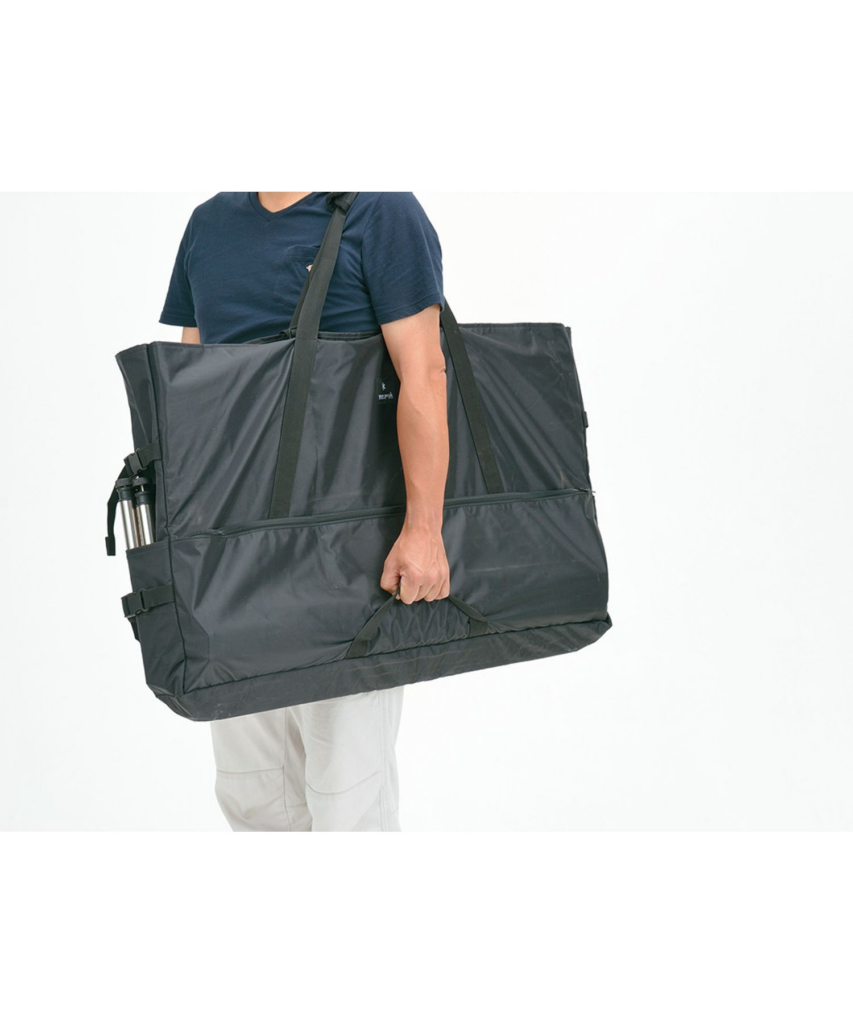 厚手のマットなど、他のバッグに入らない大型ギアを一気に運べます。