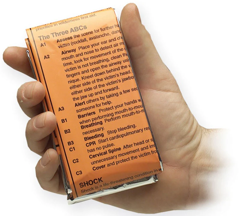 裏面のシルバーは熱を反射し、表面のオレンジはヘリコプターなどからの発見率を高めます。