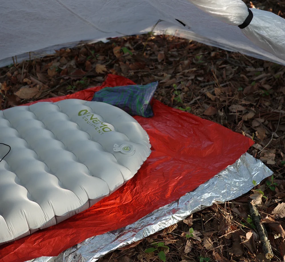 銀マットの下やシュラフ(寝袋)の中に1枚敷くだけで、地面へ逃げる熱を遮断できます。