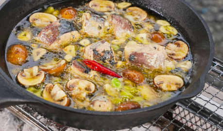 焚き火料理の定番といえば、やっぱりステーキ!シンプルだからこそ、最高の思い出になります。