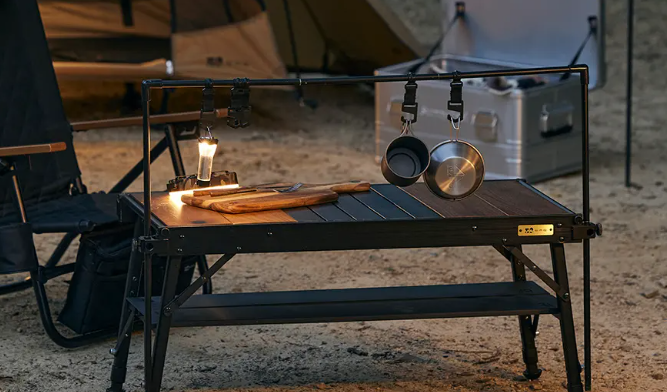 ローテーブルは、食事や作業の中心となる重要なギアです。 高さは40cm前後のものが主流で、チェアの座面高とのバランスを考えて選ぶのがポイントです。 一般的に、「チェア座面高 + 20cm〜30cm」がテーブルの最適な高さとされています。