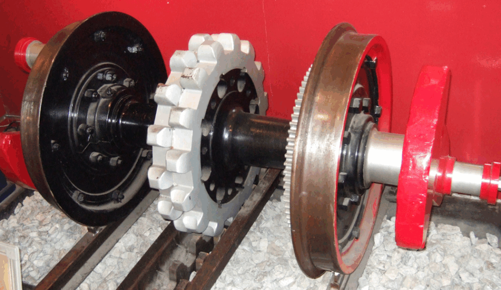 - この 2 つの歯車を噛み合わせることで、急勾配でも滑らずに走行できます。