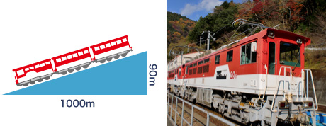 その結果、「アプトいちしろ駅」と「長島ダム駅」の間に、日本の鉄道で最も急な 90 パーミル(1000m 進むと 90m 登る)という勾配が生まれました。