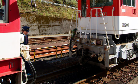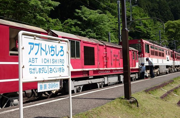 アプト区間の前後にある「アプトいちしろ駅」と「長島ダム駅」では、アプト式専用の電気機関車(ED90 型)を連結・切り離しする作業が発生します。