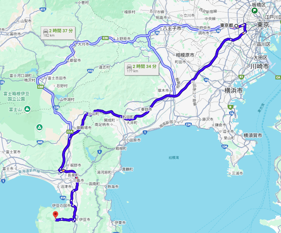 | 東京方面 | 東名高速 沼津 IC → 伊豆縦貫道 | 約 2 時間 30 分 |