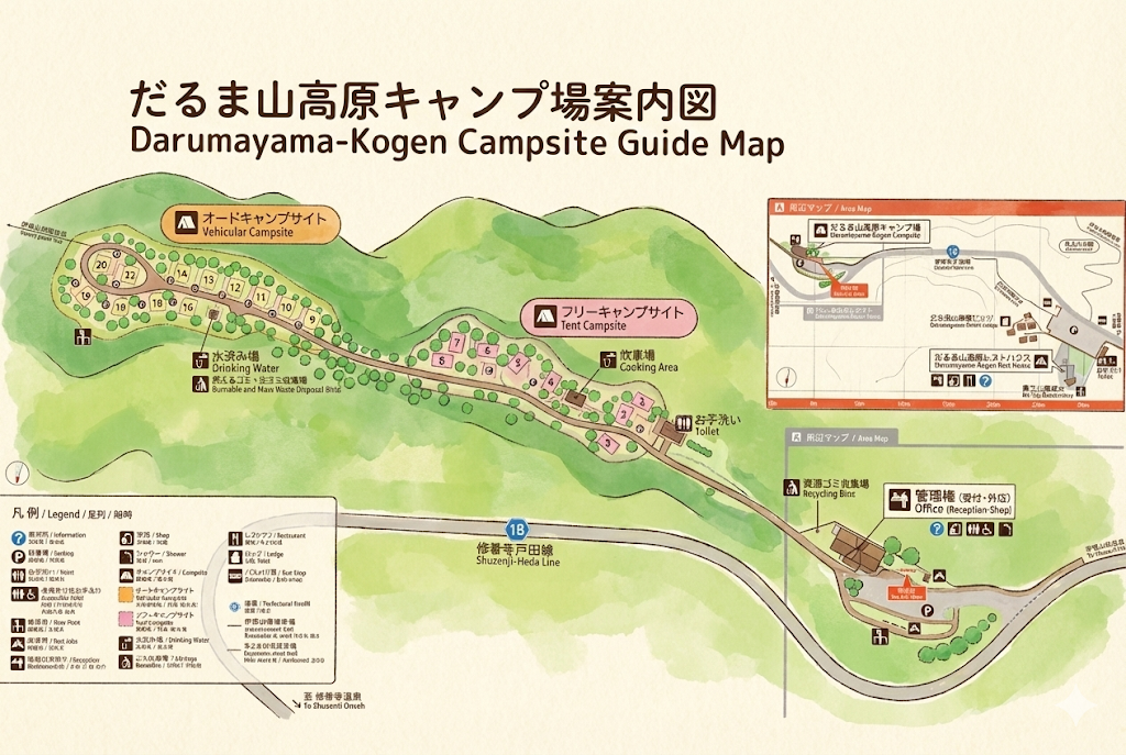 だるま山高原キャンプ場は、伊豆半島の北西部に位置する歴史あるキャンプ場です。