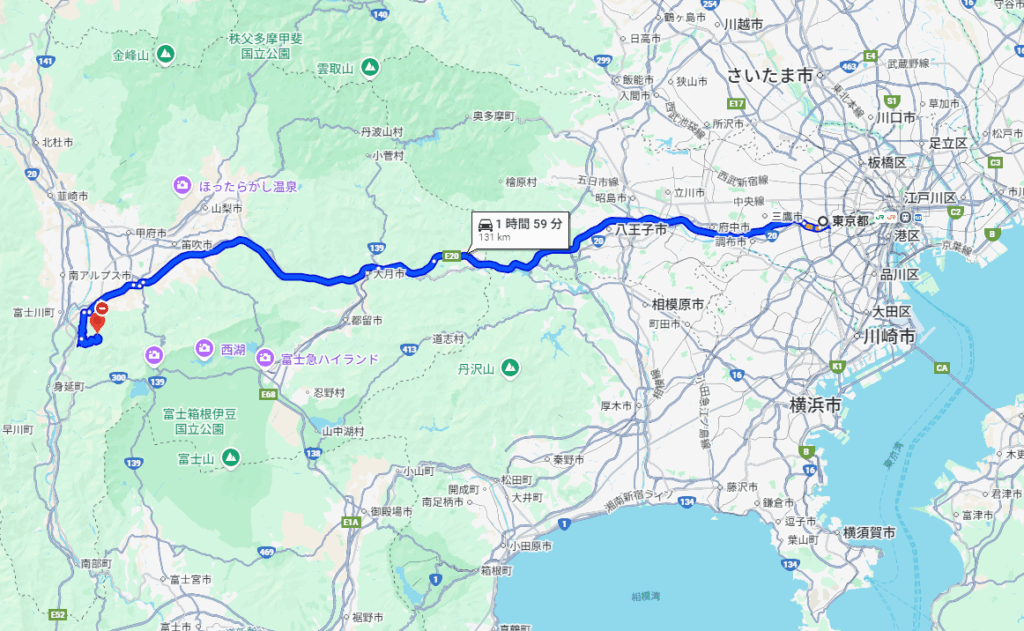 公共交通JR身延線「市川大門駅」タクシーで約 30 分