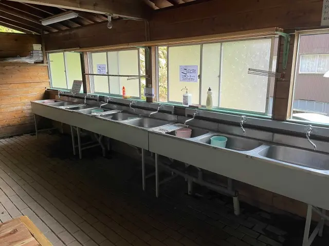 • お湯が出る炊事場: 油汚れのひどい食器洗いも快適です。