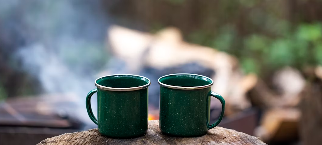 キャンプの朝、冷涼な空気の中で飲む一杯のコーヒー。