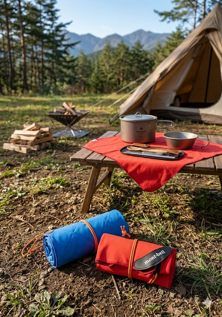 単なるカメラ保護にとどまらず、キャンプのあらゆる場面で変幻自在に活躍する万能布です。